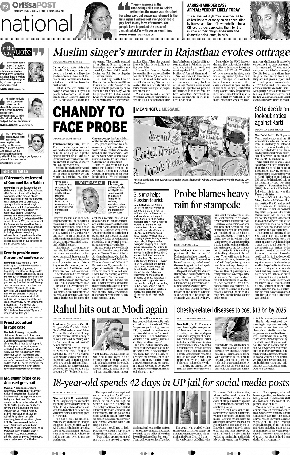 OrissaPost Page: 9 October 12, 2017 << First << 9 >> Last >> Page 1Page 2Page 3Page 4Page 5Page 6Page 7Page 8Page 9Page 10Page 11Page 12Page 13Page 14Page 15Page 16 × OrissaPost B1B2B3B4B5B6B7B8B9B10B11B12B13B14B15B16 << First << 9 >> Last >> B1B2B3B4B5B6B7B8B9B10B11B12B13B14B15B16