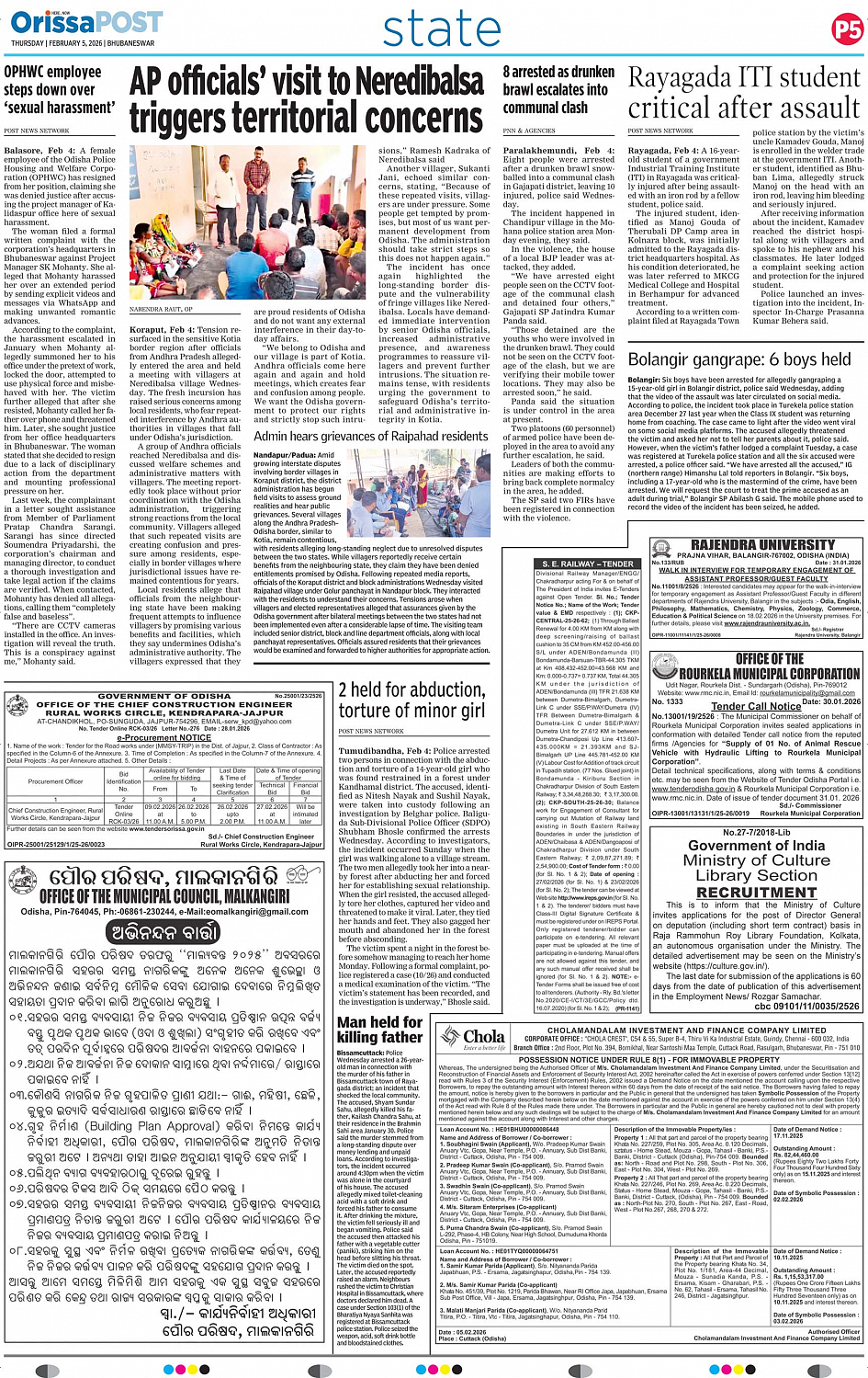 OrissaPOST Page: 5 February 05, 2026 << First << 5 >> Last >> Page 1Page 2Page 3Page 4Page 5Page 6Page 7Page 8Page 9Page 10Page 11Page 12 × OrissaPOST 010203040506070809101112 Full PDF << First << 5 >> Last >> 010203040506070809101112