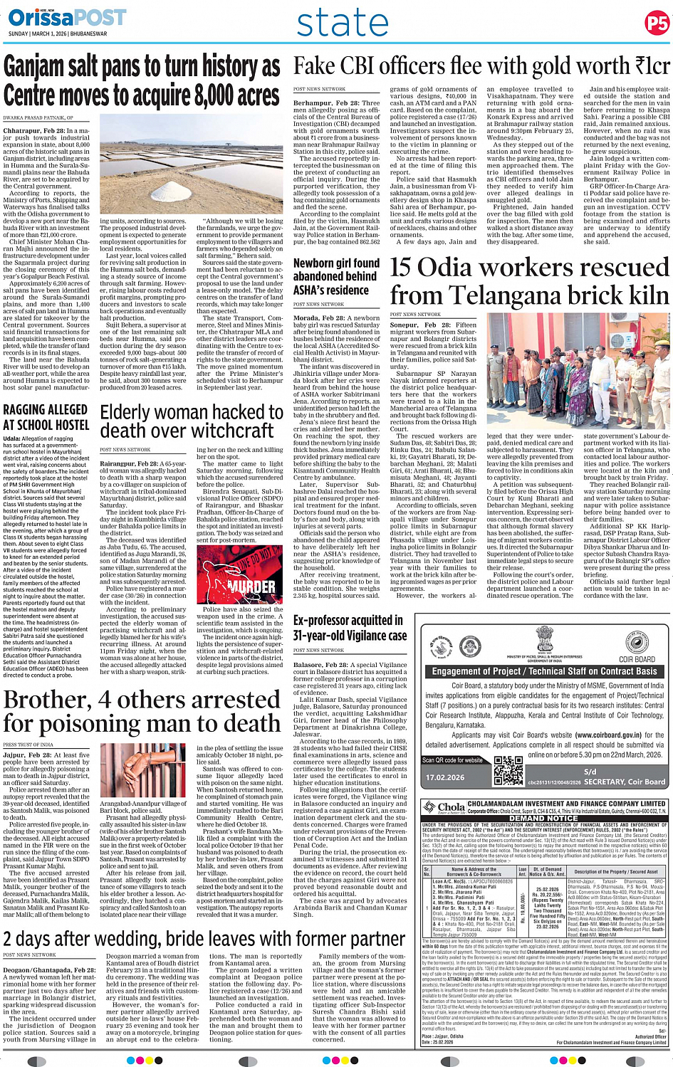 OrissaPOST Page: 7 March 01, 2026 << First << 7 >> Last >> Page 1Page 2Page 3Page 4Page 5Page 6Page 7Page 8Page 9Page 10Page 11Page 12 × OrissaPOST 123456789101112 Full PDF << First << 7 >> Last >> 123456789101112