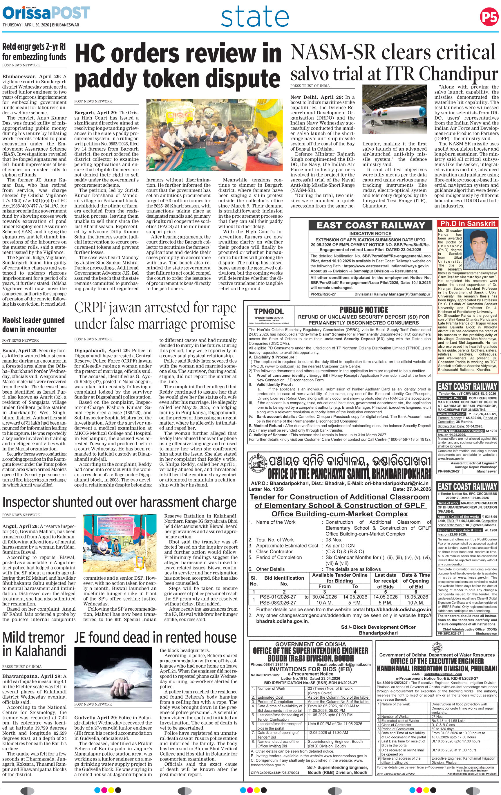 OrissaPOST Page: 5 April 30, 2026 << First << 5 >> Last >> Page 1Page 2Page 3Page 4Page 5Page 6Page 7Page 8Page 9Page 10Page 11Page 12 × OrissaPOST 123456789101211 ✄ Clip Full PDF × Clip Article Loading preview... << First << 5 >> Last >>